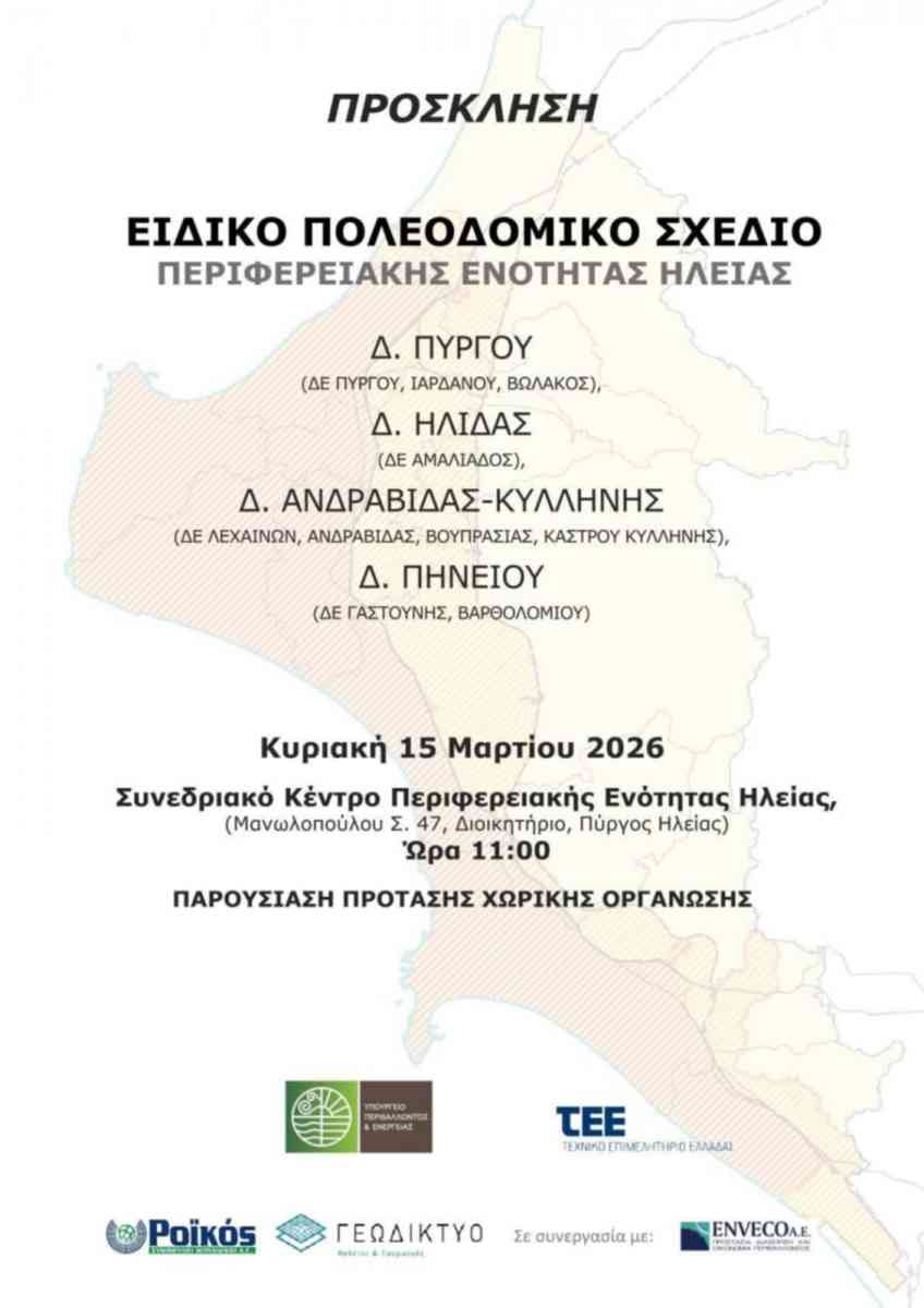 Πρόσκληση για το Ειδικό Πολεοδομικό Σχέδιο ΠΕ Ηλείας