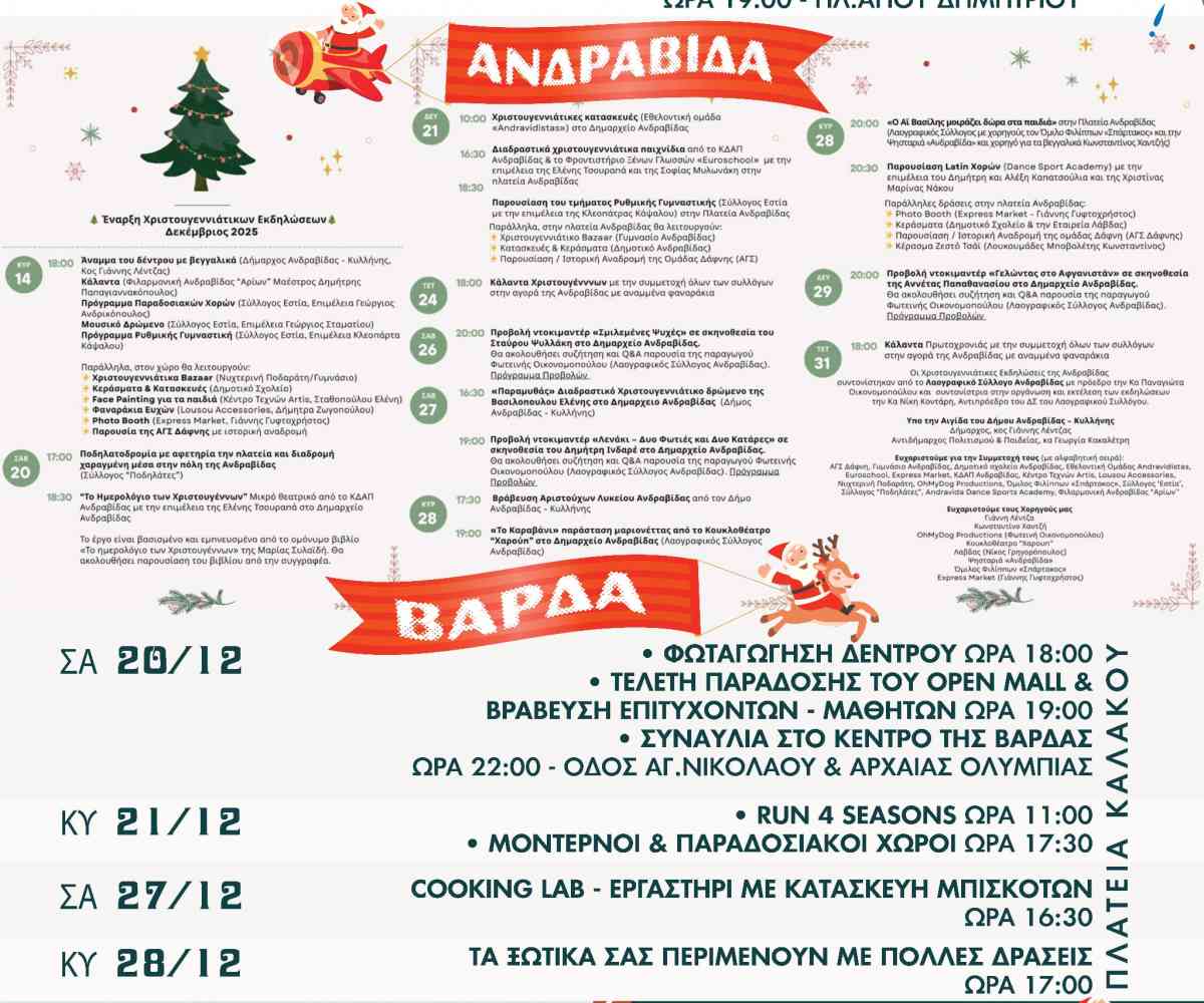 ΧΡΙΣΤΟΥΓΕΝΝΙΑΤΙΚΟ ΠΡΟΓΡΑΜΜΑ ΔΗΜΟΥ ΑΝΔΡΑΒΙΔΑΣ ΚΥΛΛΗΝΗΣ