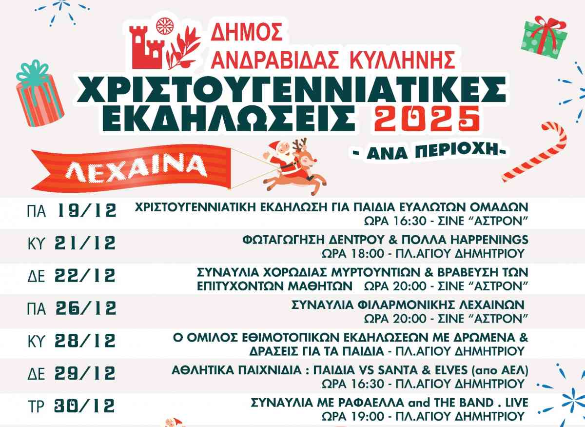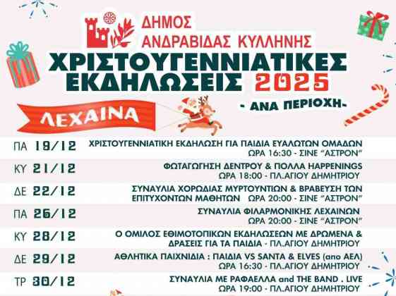 Η τελετή φωταγώγησης του Χριστουγεννιάτικου Δέντρου στην κεντρική Πλατεία Ανδραβίδας πραγματοποιήθηκε με μεγάλη επιτυχία την Κυριακή 14 Δεκεμβρίου