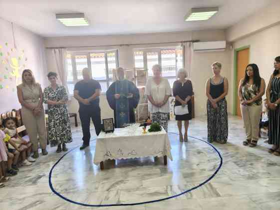 Με ιδιαίτερη χαρά και συγκίνηση, πραγματοποιήθηκε σήμερα ο καθιερωμένος αγιασμός στον ανακαινισμένο Παιδικό Σταθμό Λεχαινών, σηματοδοτώντας τ